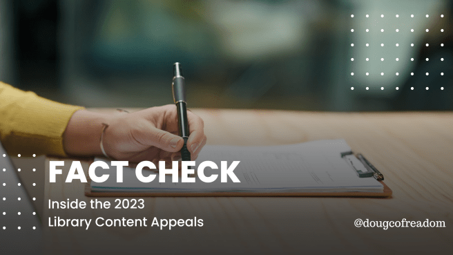 Wood claimed that he “would be opposed to heterosexual content that would put sexual perversion or sexual acts in front of children.” If that’s the case, why has Wood only filed complaints against LGBTQ books, most of which are shelved in the adult collection at Douglas County Libraries? Get the facts and look inside the appeals with our recent post: