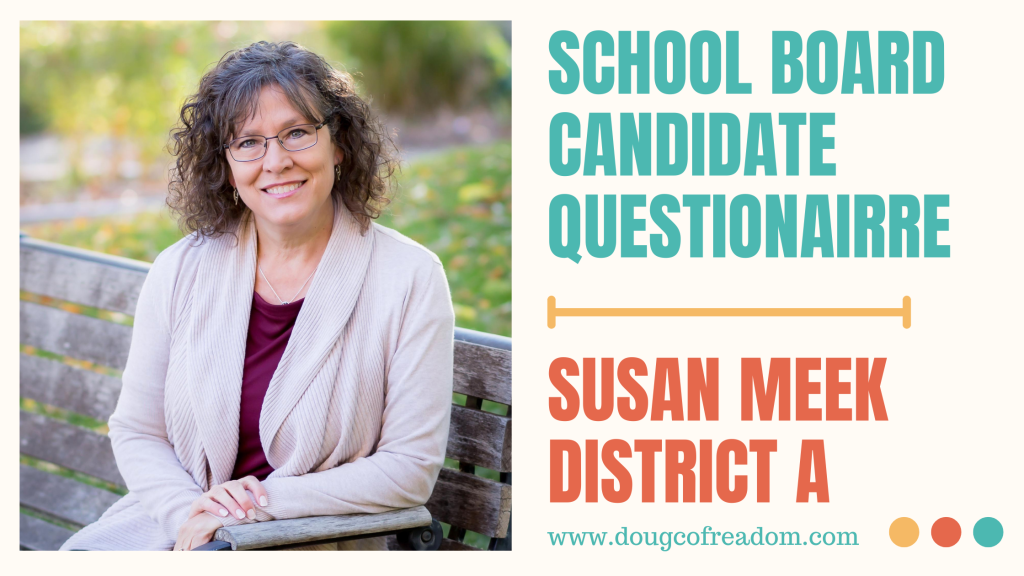 Concerned about the censorship movement sweeping across America’s schools, the Douglas County FReadom Defenders sent all the DCSD BOE candidates a brief questionnaire in August. Here’s what District A candidate Susan Meek had to say: