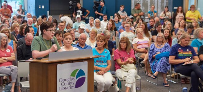 Sign the Petition: Tell the Library Trustees that Book Bans Have No Place in Douglas County! A group of people demanding the removal of LGBTQ books continued their campaign at the June Library Board of Trustees Business Meeting. Most local residents and library administration resisted. The trustees will decide on at least four of the … Continue reading Colorado Newsline: More LGBTQ Book Removals Demanded in Douglas County